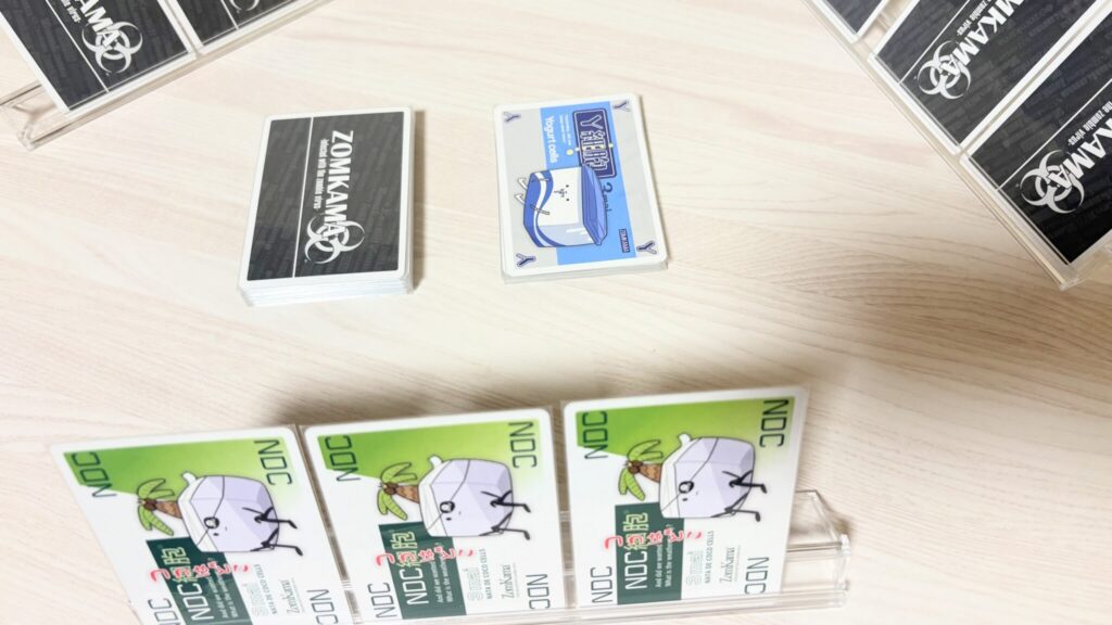 「ゾン噛まPARTY」は、カードを 3枚揃えて伏せるタイミングを競う スリル満点のカードゲームです。