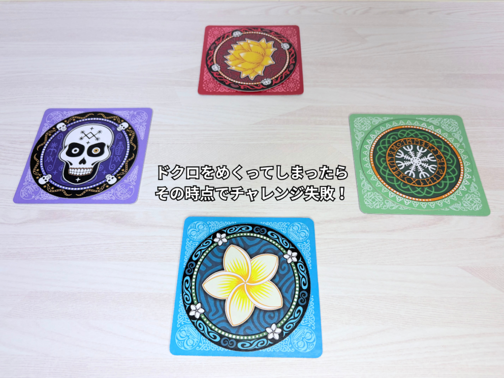 「チャレンジャー」がドクロをめくってしまった場合、その時点で失敗となり、自身のディスクを全て回収します。